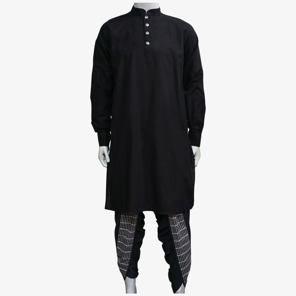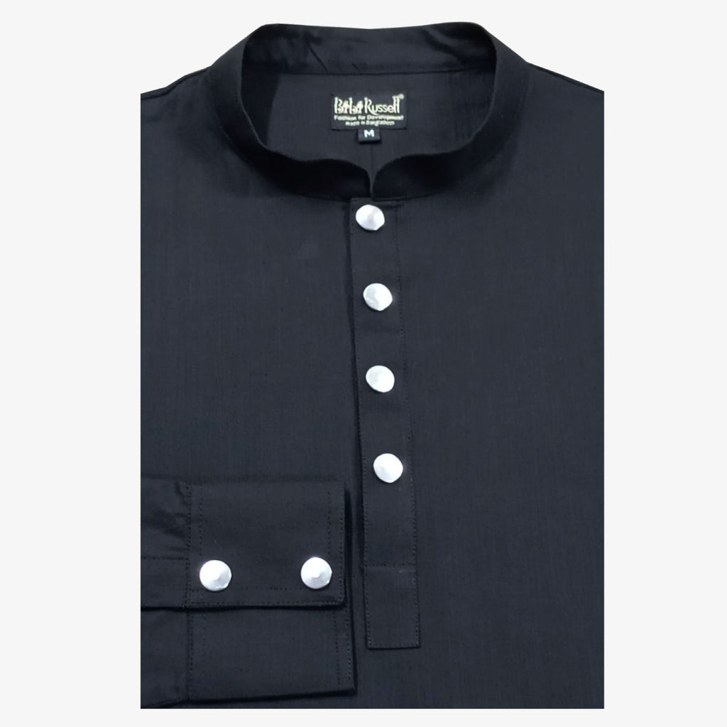 Black Colour Band Collar Eid Panjabi, Snap Button, Coconut Button, Hand woven, Locally Sourced and Lightweight. Features two pockets in side. Delivery within 2-3 working days. Colour may be slightly differ physically than the photography or screen resolution.