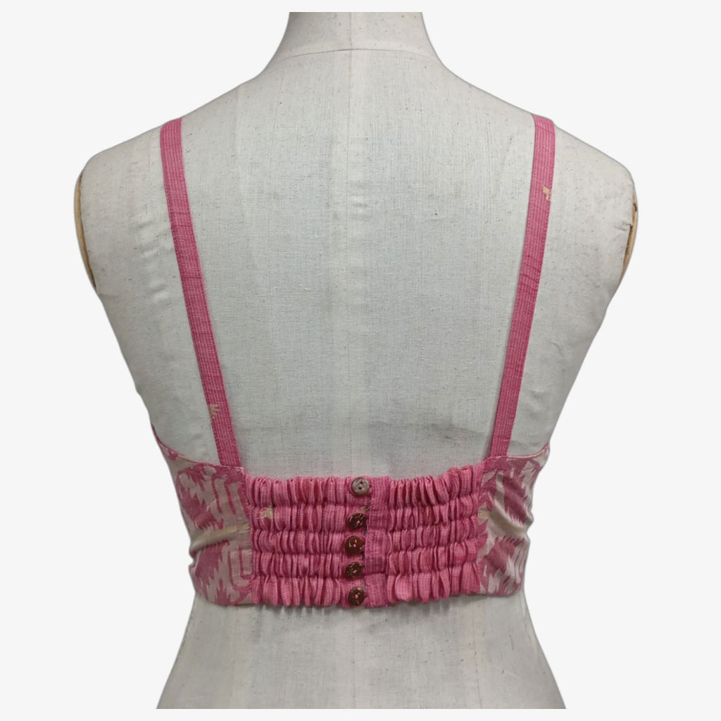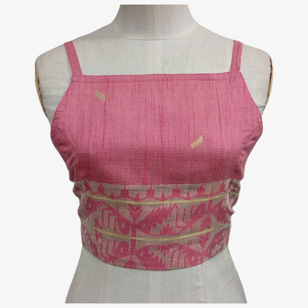 Pink & Cream Adjustable Back Opening Blouse. Handwoven, Lightweight , Cotton, Delivery within 3-5 working days. Colour may be slightly differ physically than the photography or screen resolution.