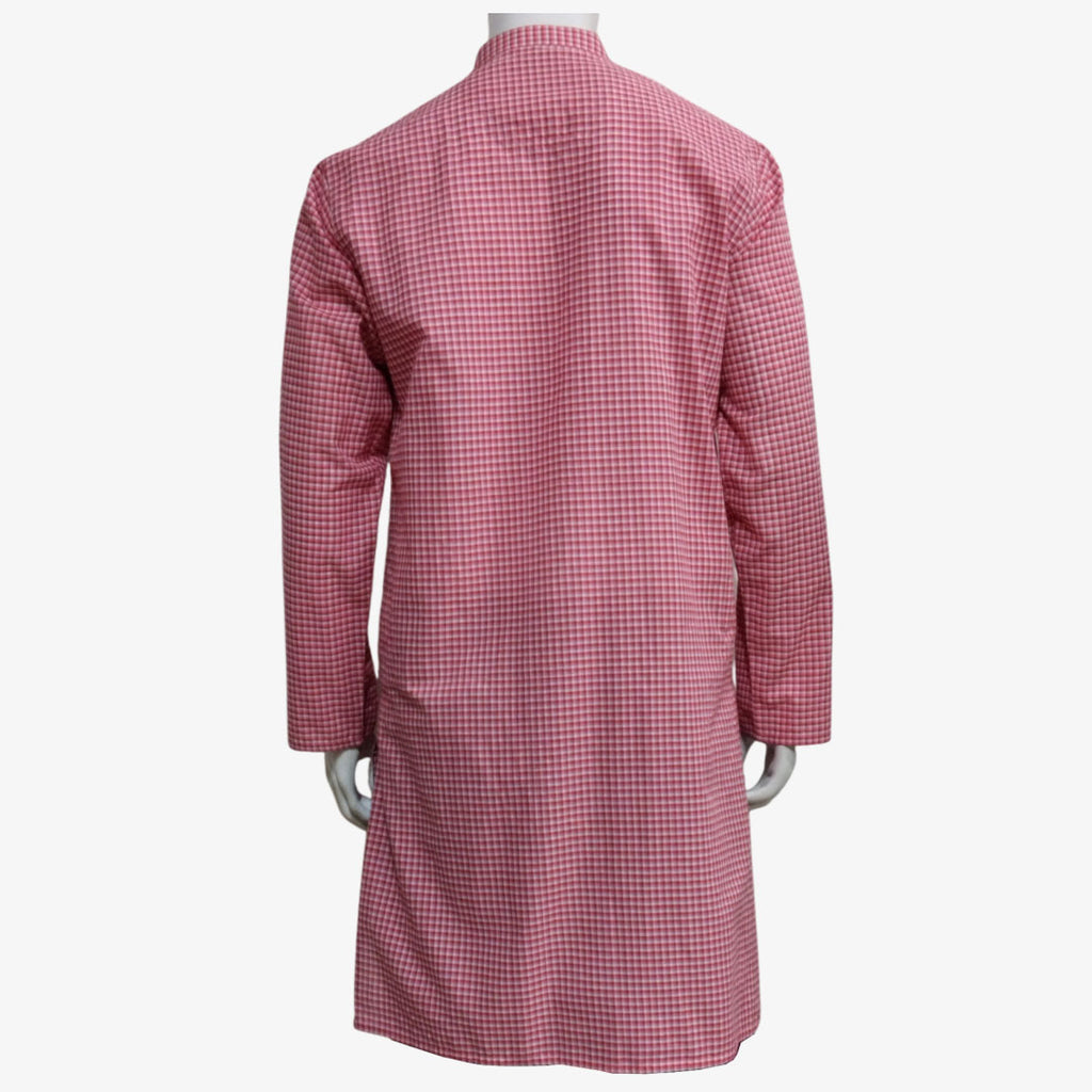 Pink & White Check Colour Band Collar Eid Panjabi, Coconut Button, Hand woven, Locally Sourced and Lightweight. Features two pockets in side. Delivery within 2-3 working days. Colour may be slightly differ physically than the photography or screen resolution.